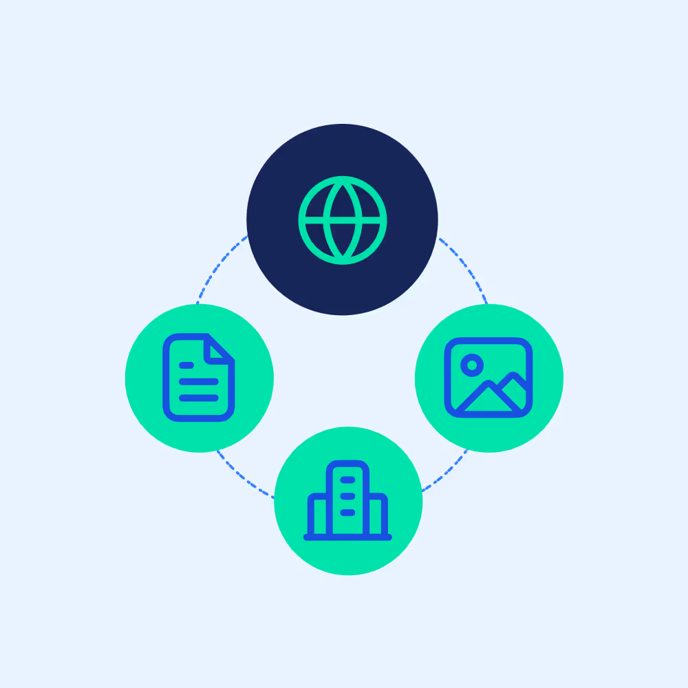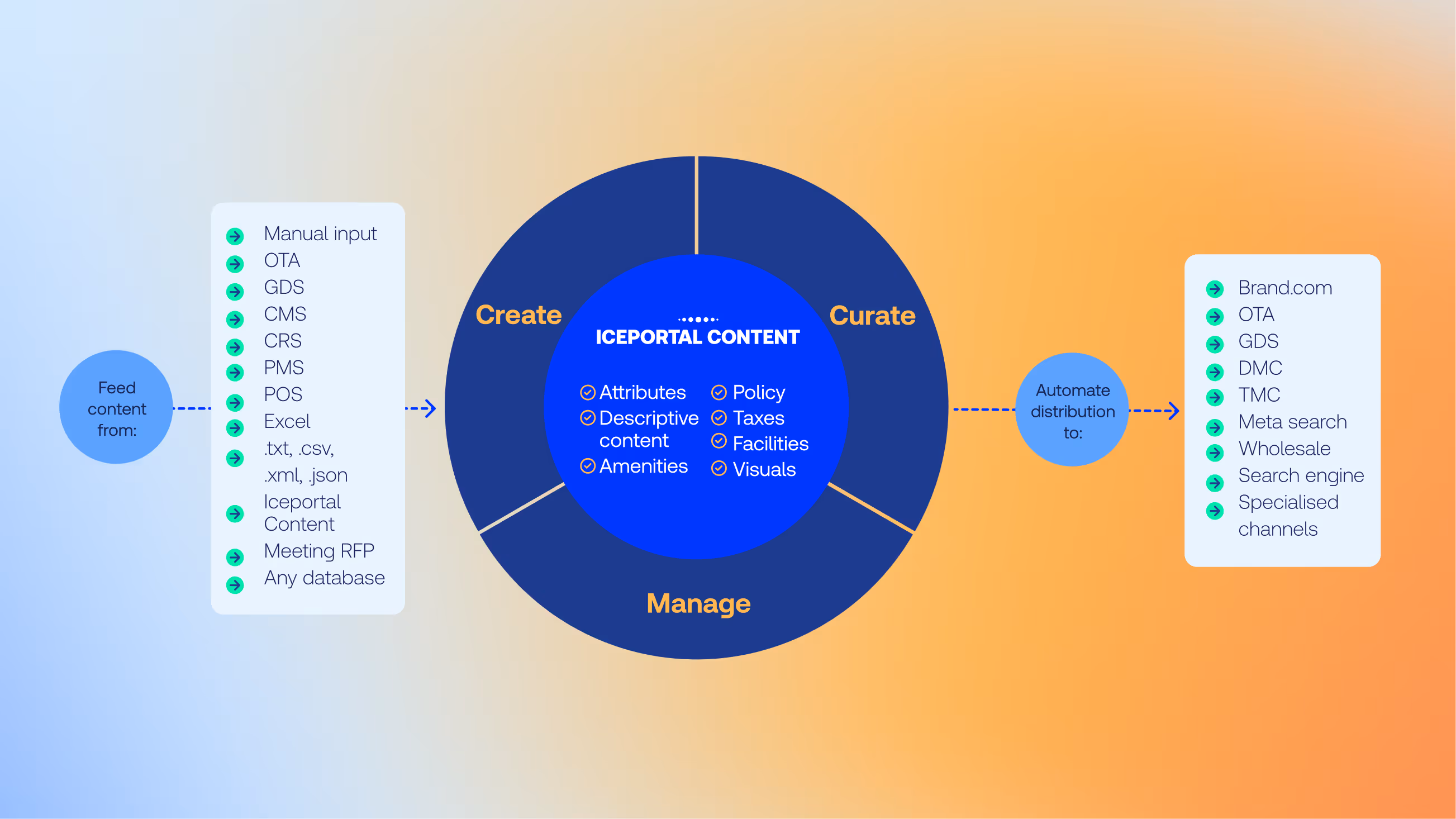 Iceportal interactúa con diversas fuentes que almacenan detalles de propiedades, elementos visuales, descripciones y mucho más para proporcionar un conjunto unificado e ideal de contenidos.